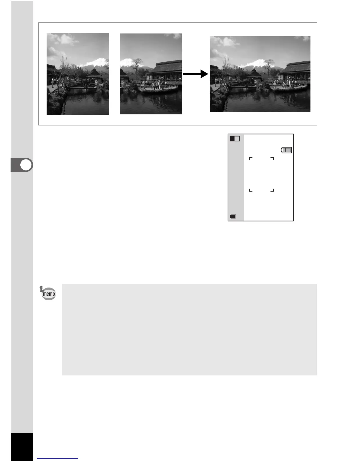 • For less distortion when taking the second picture, turn the camera