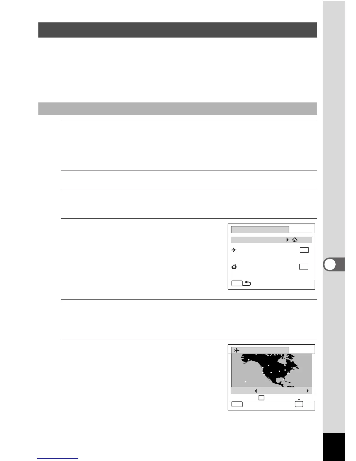 “Changing the Date and Time” (p.176) serve as the W (Hometown) date
