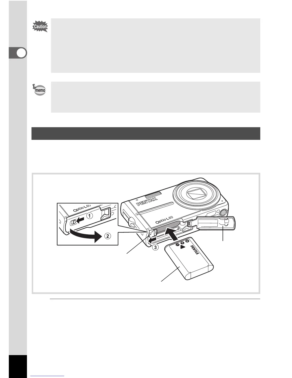 Move the battery/card cover lock lever to the OPEN position 1 and
