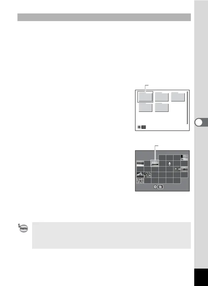 • Press the 3 button in folder display or calendar display to