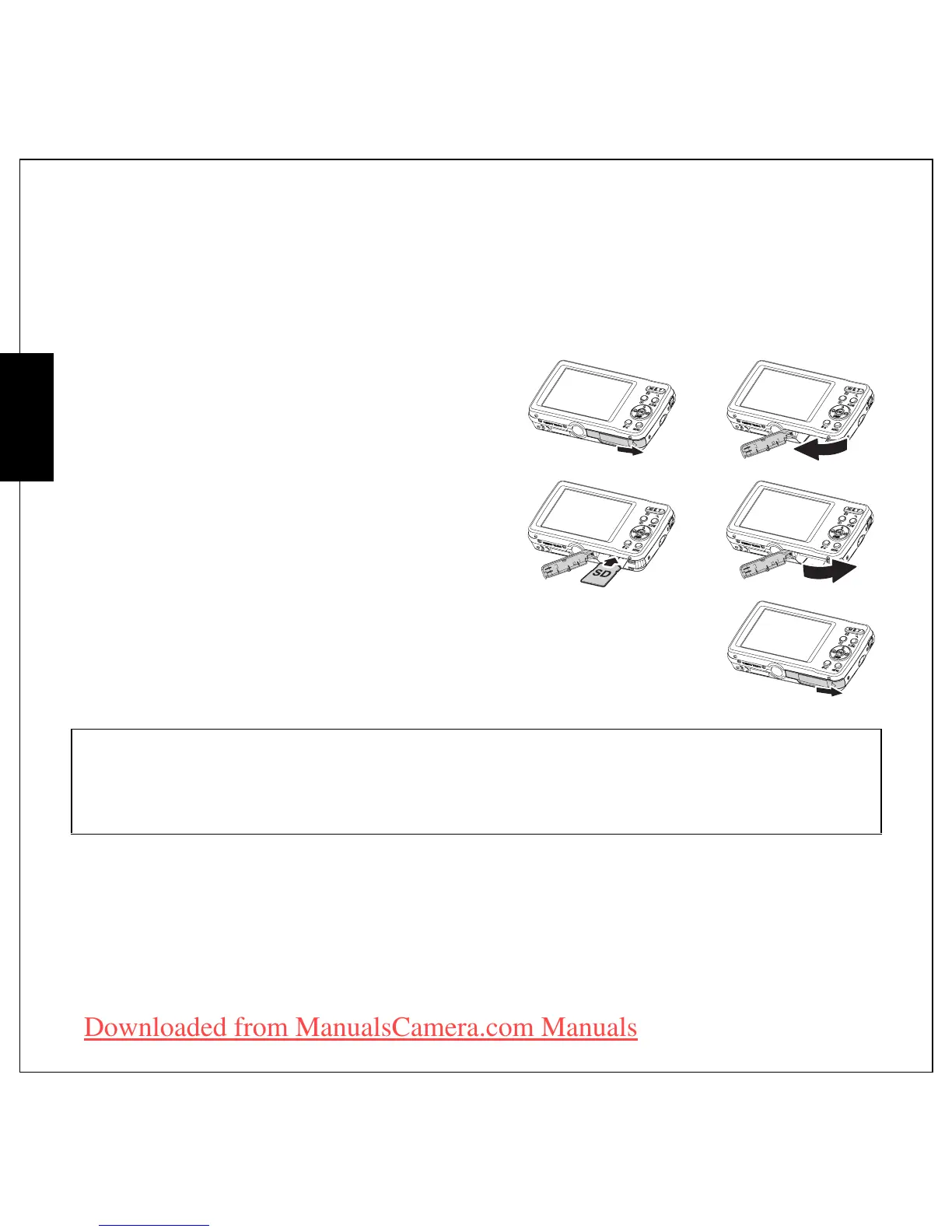 To remove the SD/SDHC card, gently push the card until it pops out.