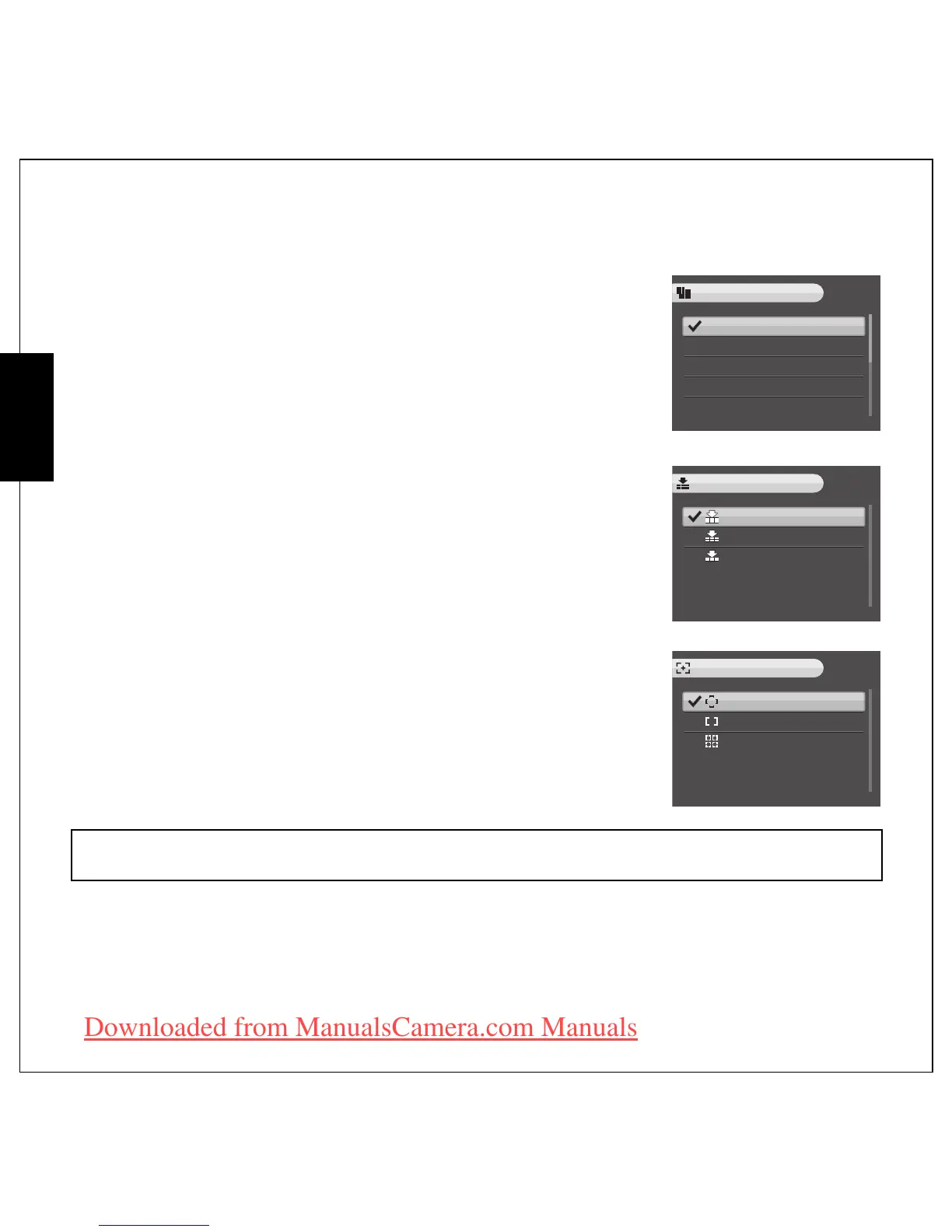 • SELECTED AREA: Sets the focusing area to one of points in the