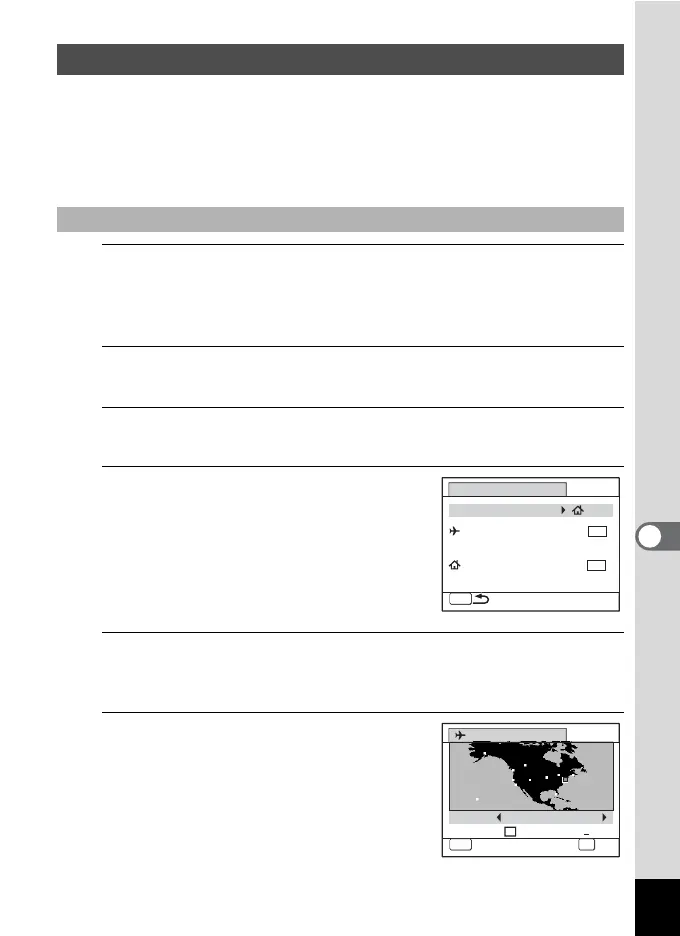 “Changing the Date and Time” (p.186) serve as the W (Hometown) date