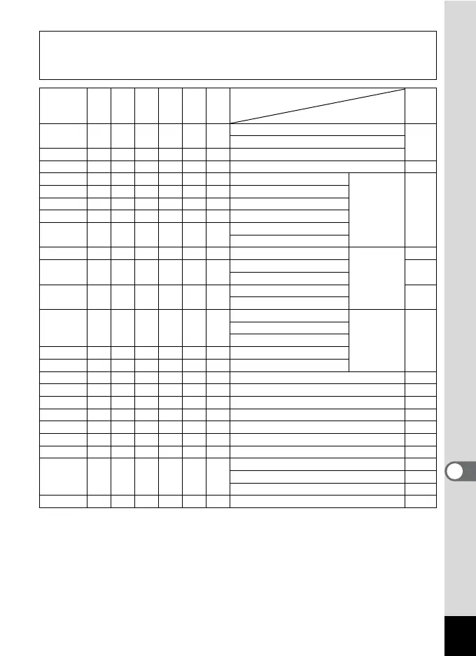 Shooting menu items not listed in this chart can be set in any shooting mode except for