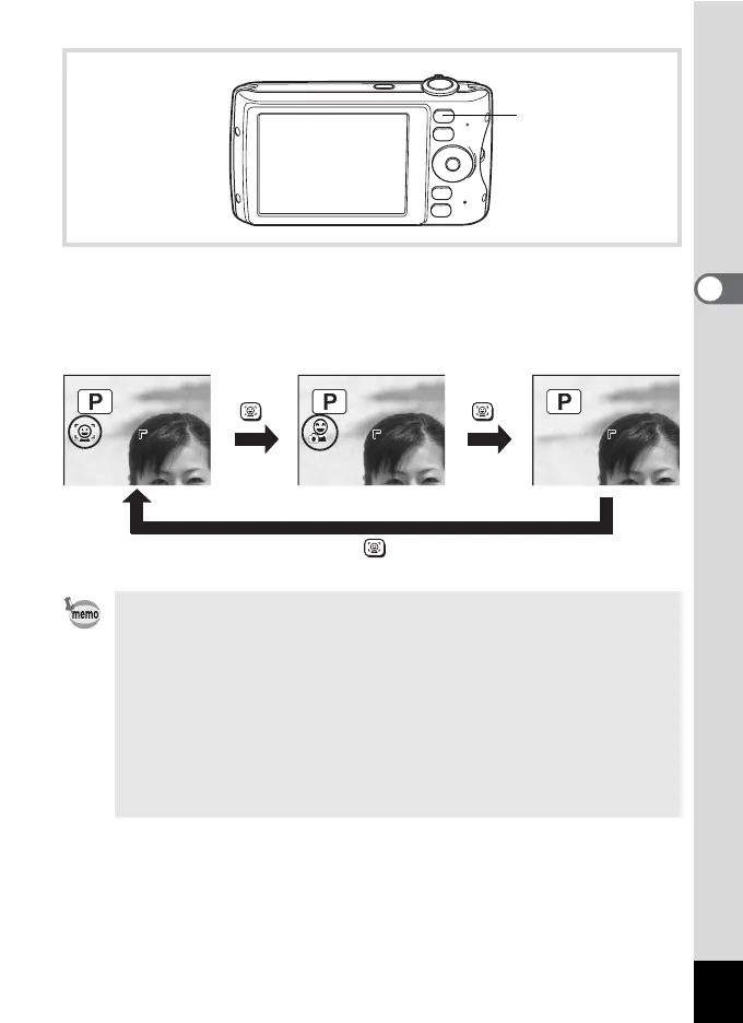• Face Priority On is automatically selected in 9 (Green), b (Auto