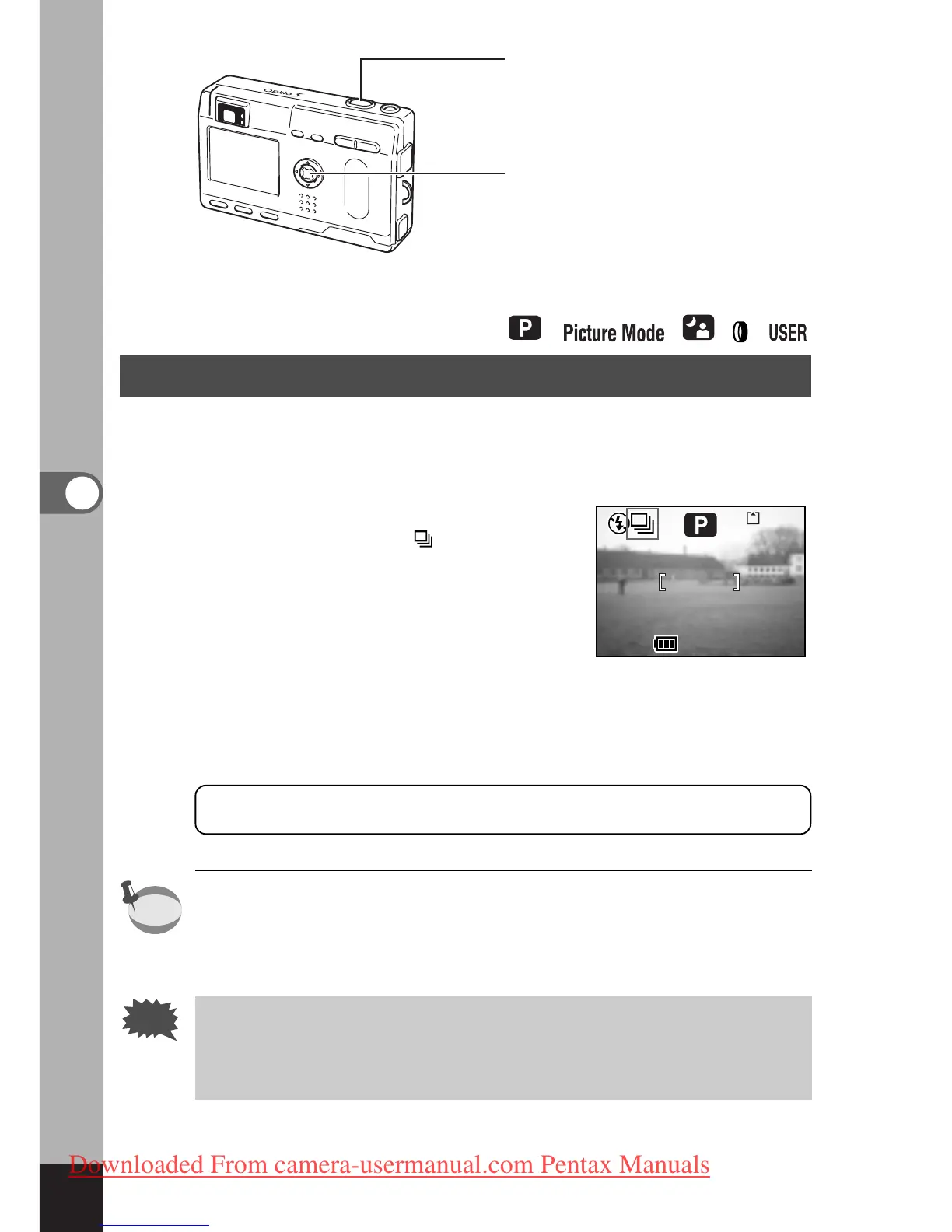 • Continuous shooting is not available for Movie Picture,