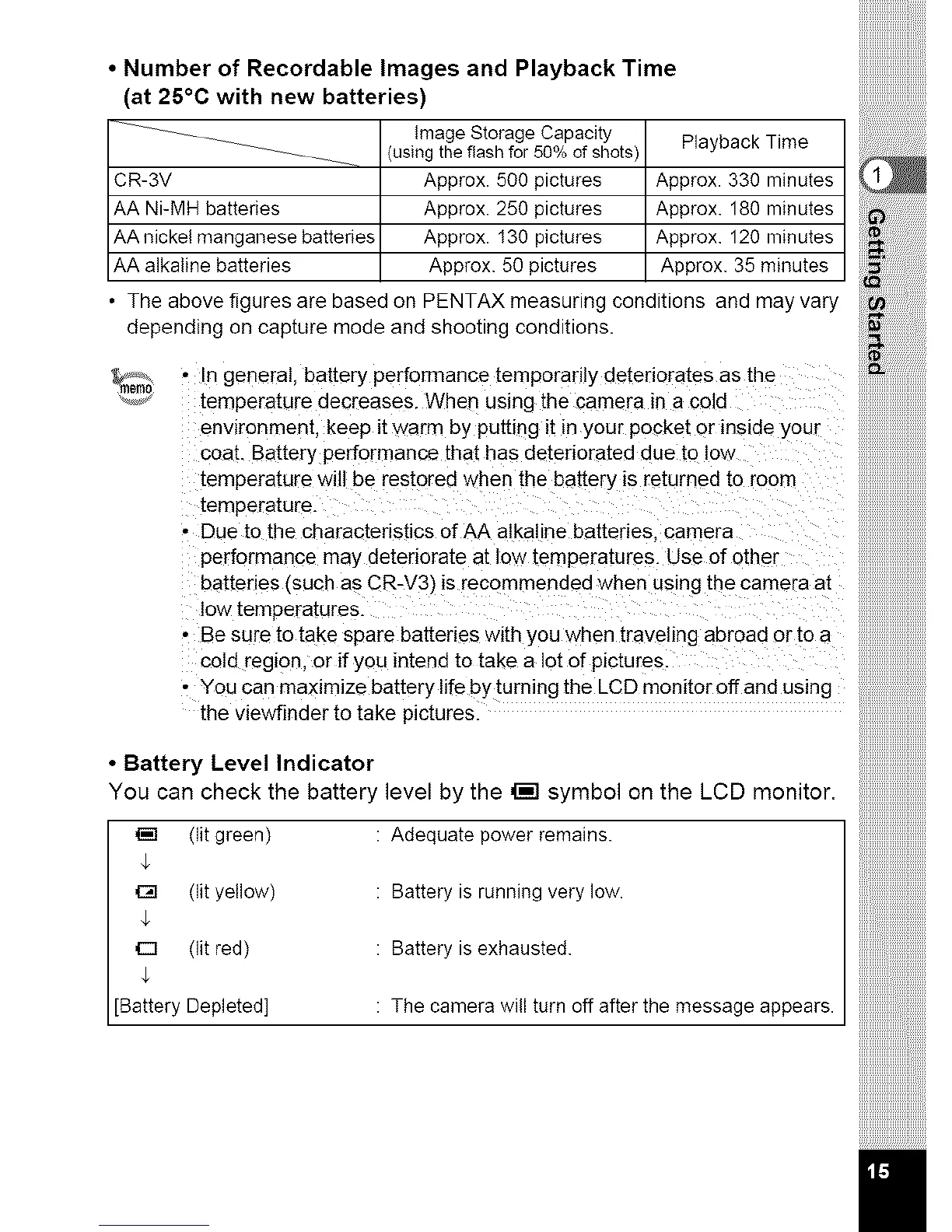 AA alkaline batteries Approx. 50 pictures Approx. 35 minutes