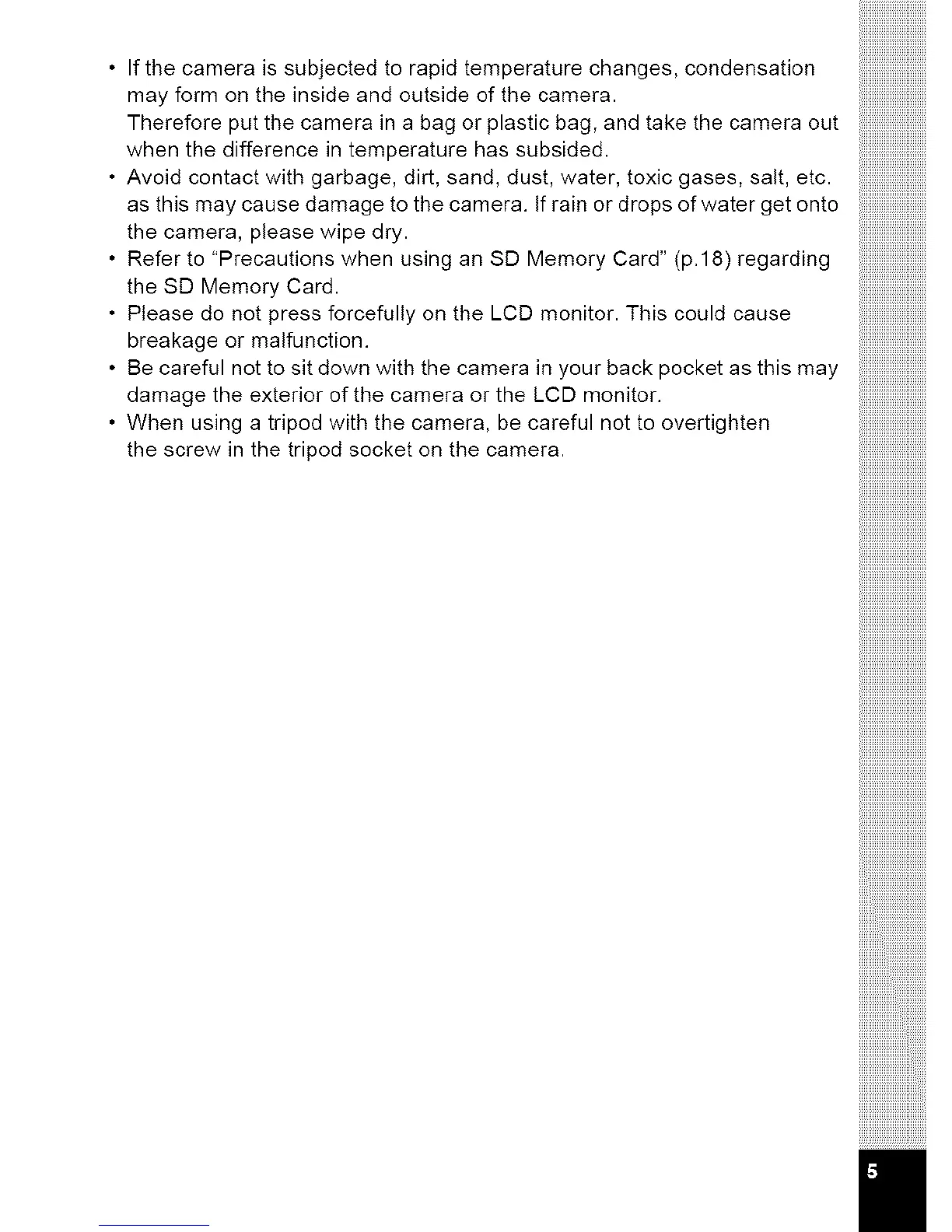 • Refer to "Precautions when using an SD Memory Card" (p.18) regarding