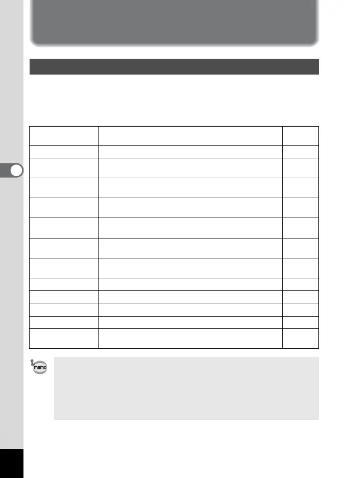 • Menu items not included in [Memory] will also be saved in the settings