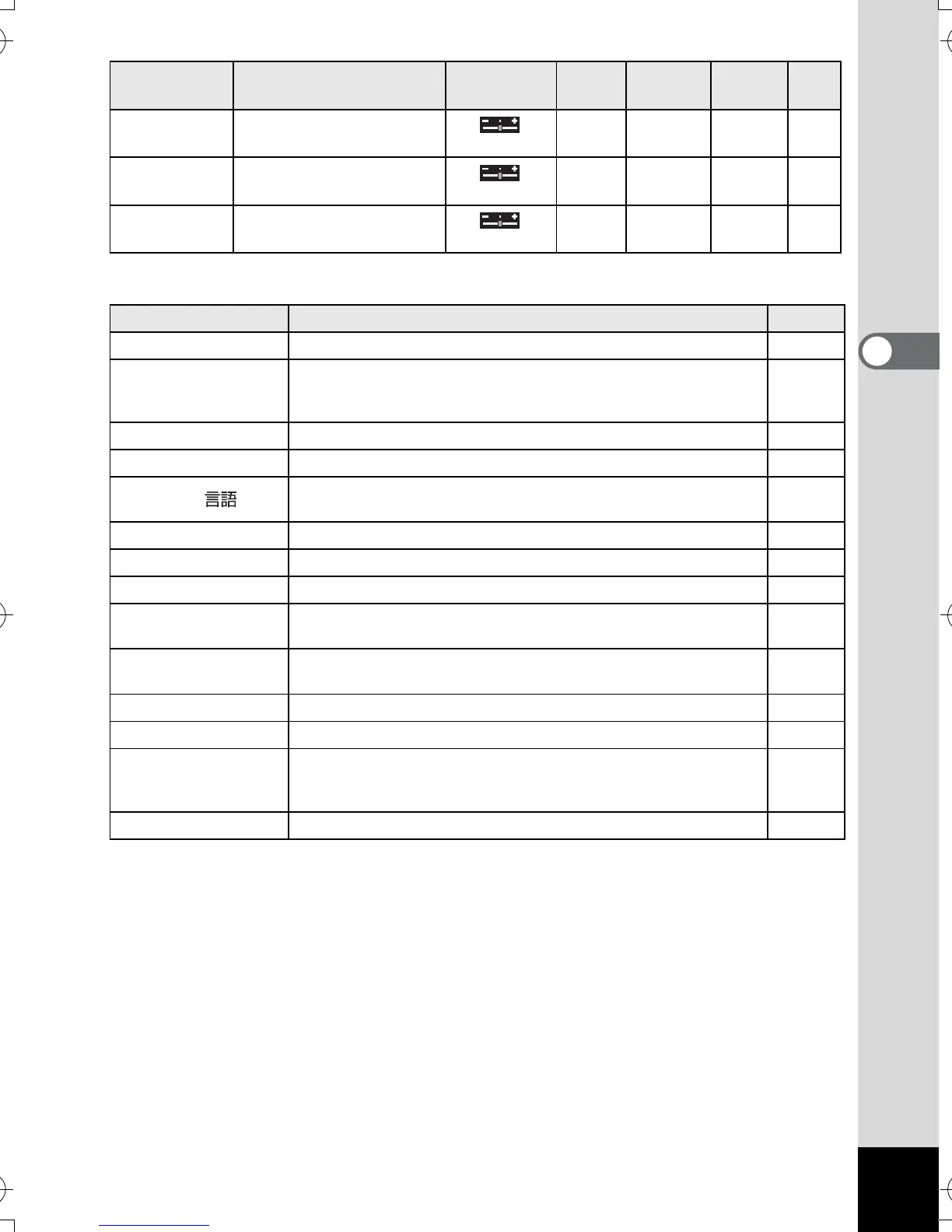 Reset For returning the camera settings to defaults p.151