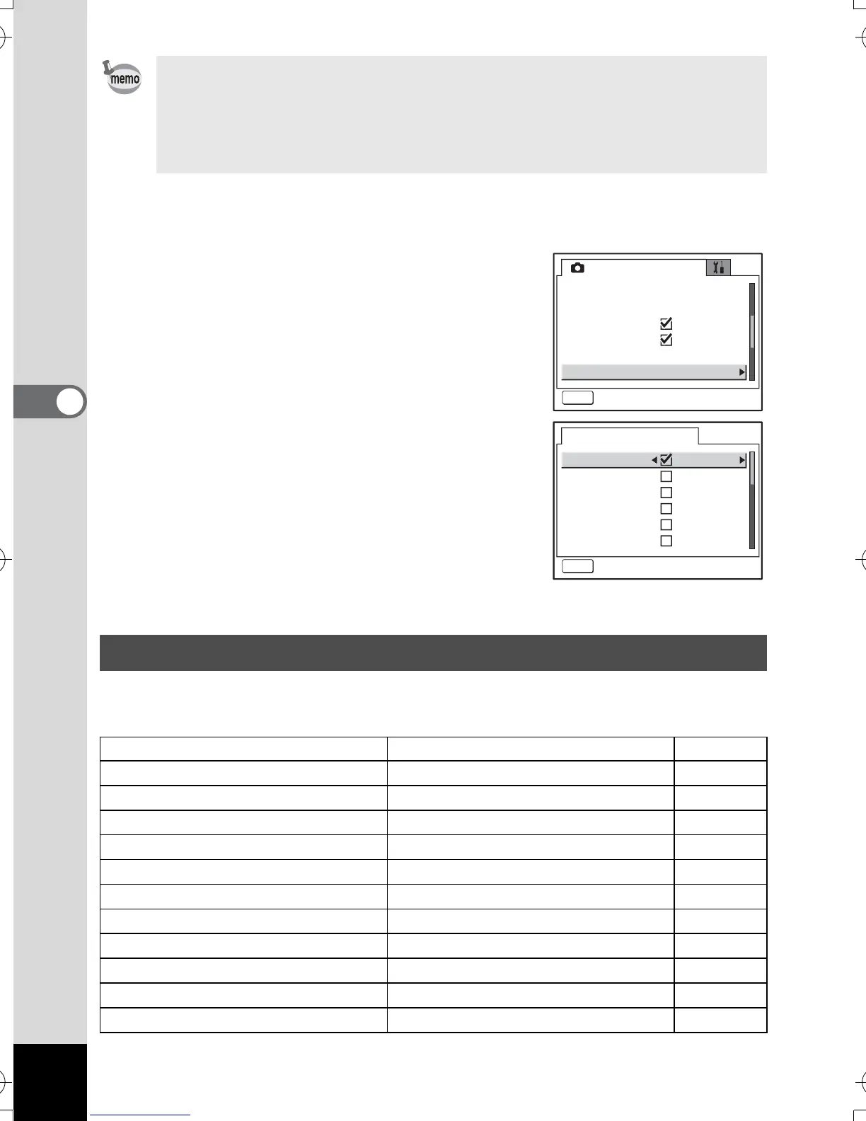• Menu items not included in [Memory] will also be saved in the