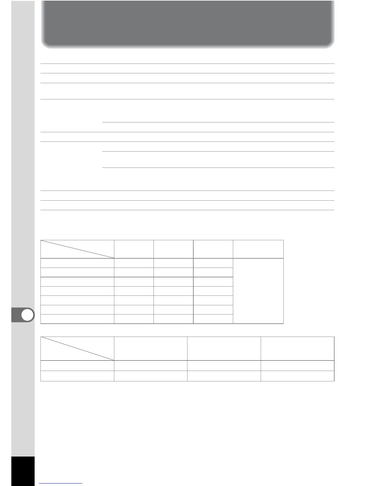 * The above table indicates the approximate number of images and recording time. The number of