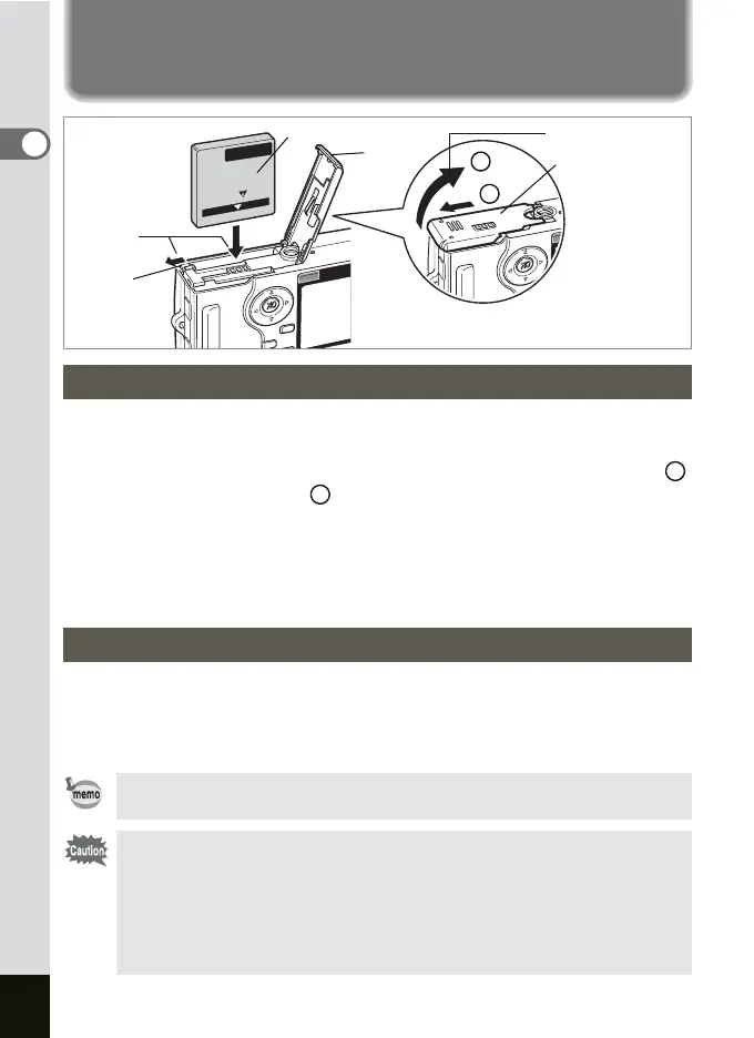 1 Open the battery/card cover.