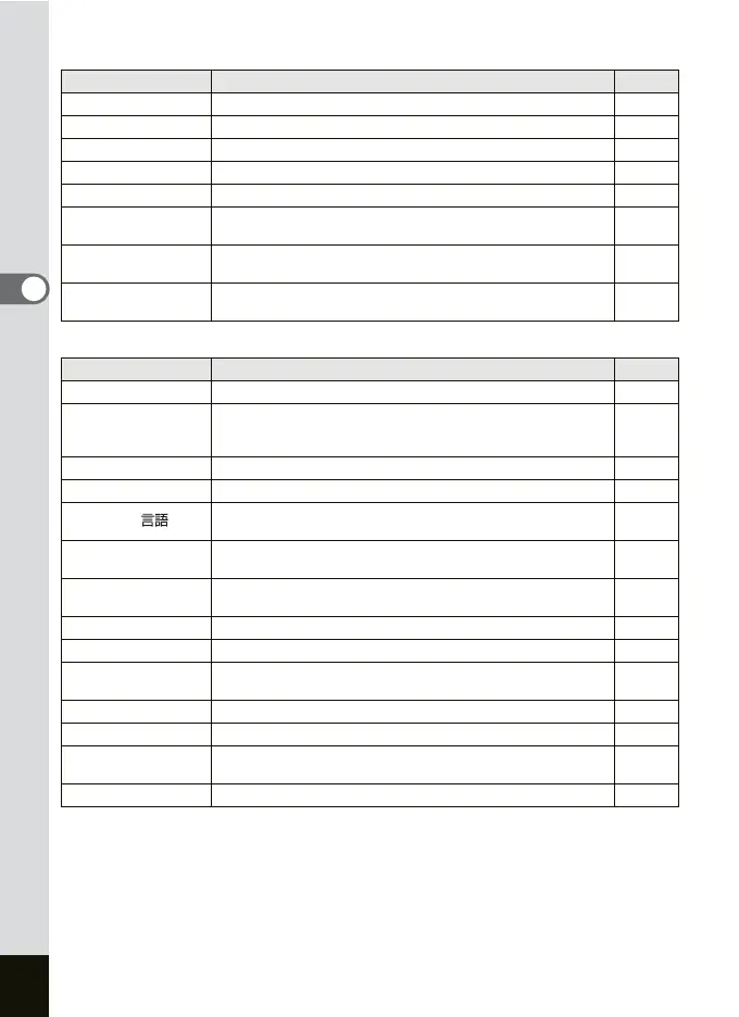 Reset For returning the camera settings to defaults p.159