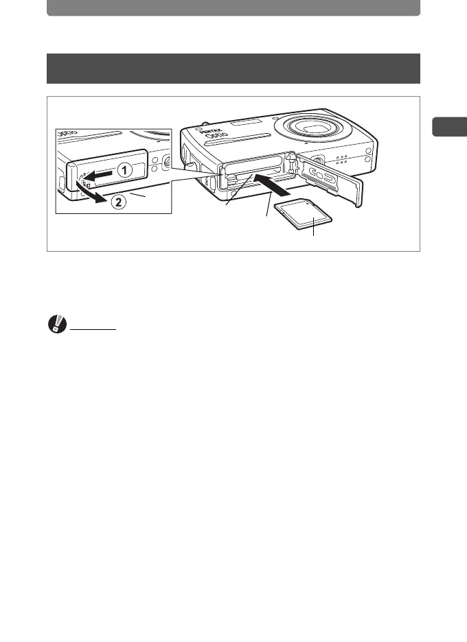 • Make sure the camera is turned off before inserting or removing the SD