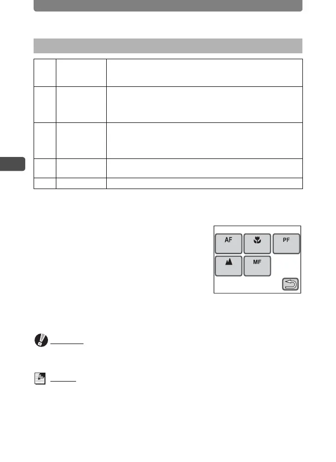 • If focusing is not possible with q (Macro), pictures cannot be taken.