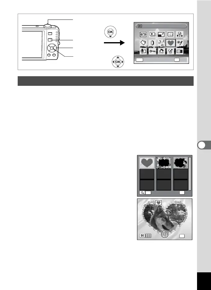 This function lets you add a decorative frame to still pictures. There are