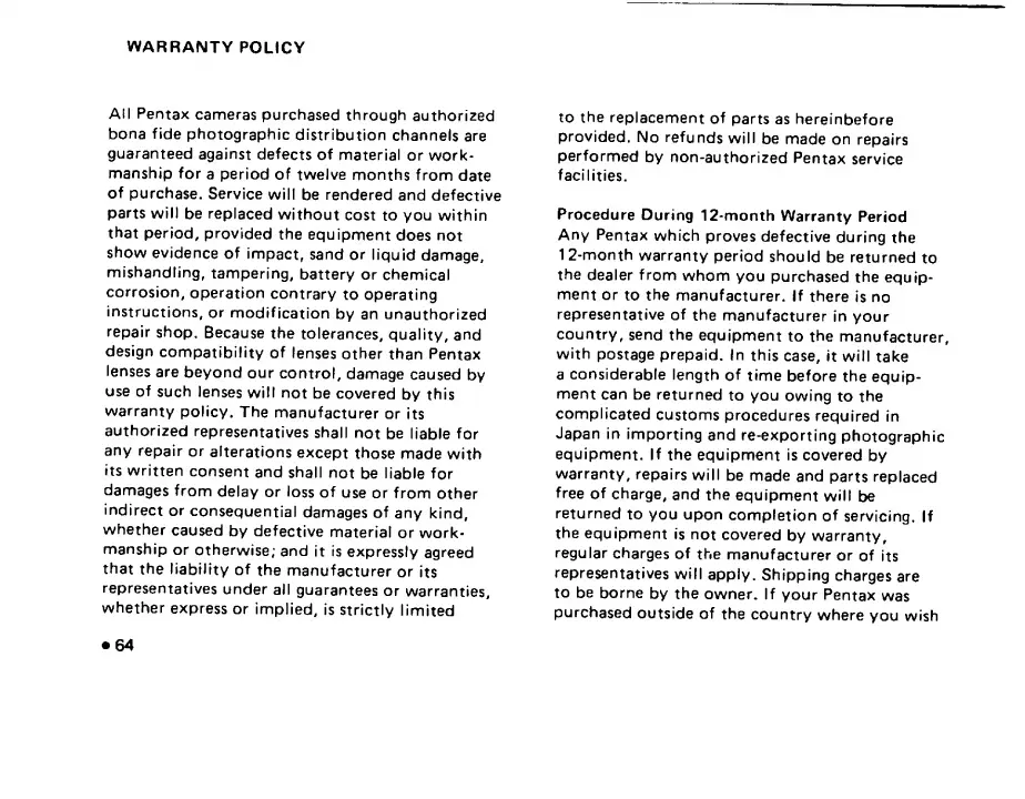 Pentax P5 - Warranty Policy