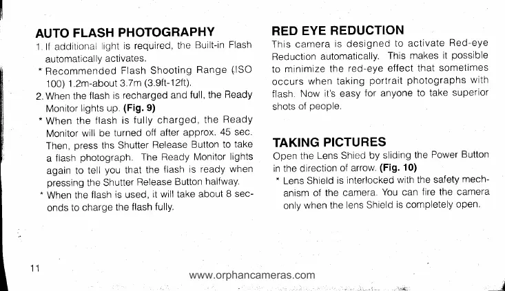 Pentax PC-33 - Auto Flash Photography; Red Eye Reduction; Taking Pictures