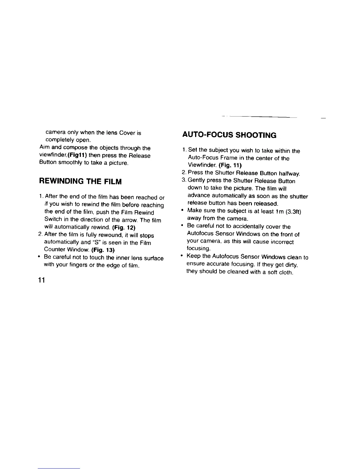 Pentax PC-550 Date - Rewinding the Film; Auto Focus Shooting