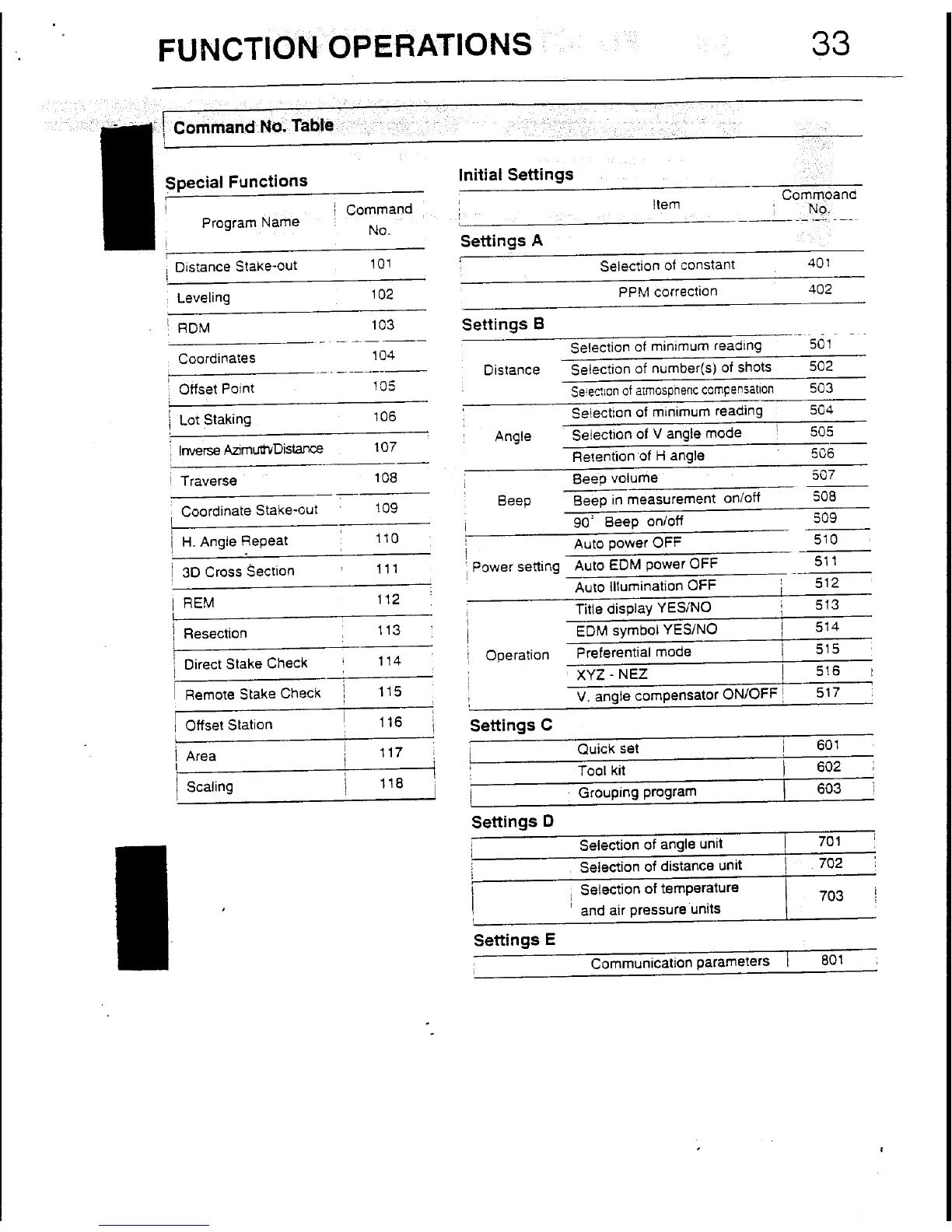 Pentax PTS-V2 - Command No. Table; Special Functions