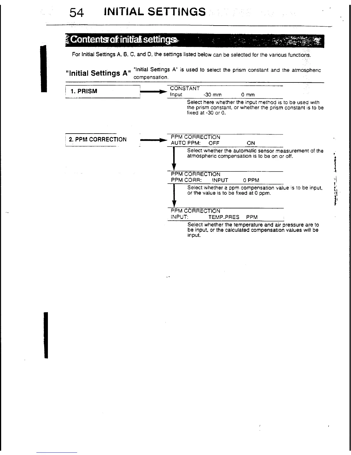 Pentax PTS-V2 - Contents of Initial Settings