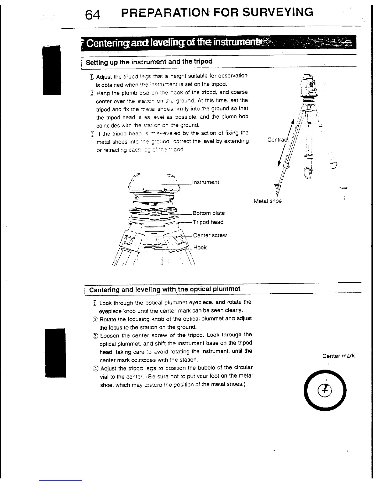 Pentax PTS-V2 - Preparation for Surveying; Centering and Leveling of the Instrument; Setting up the Instrument and the Tripod; Centering and Leveling with the Optical Plummet