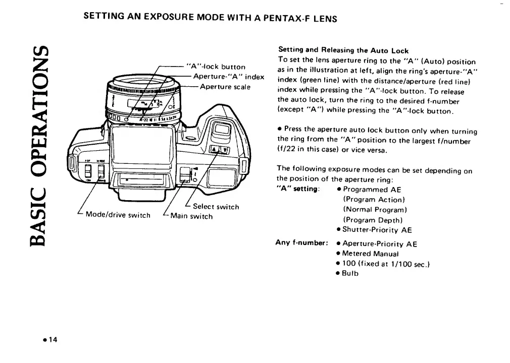 Pentax SF1 - Setting an Exposure Mode with a Pentax-F Lens