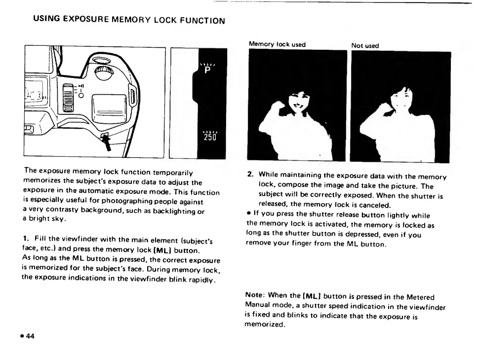 Pentax SF10 - Using Exposure Memory Lock Function