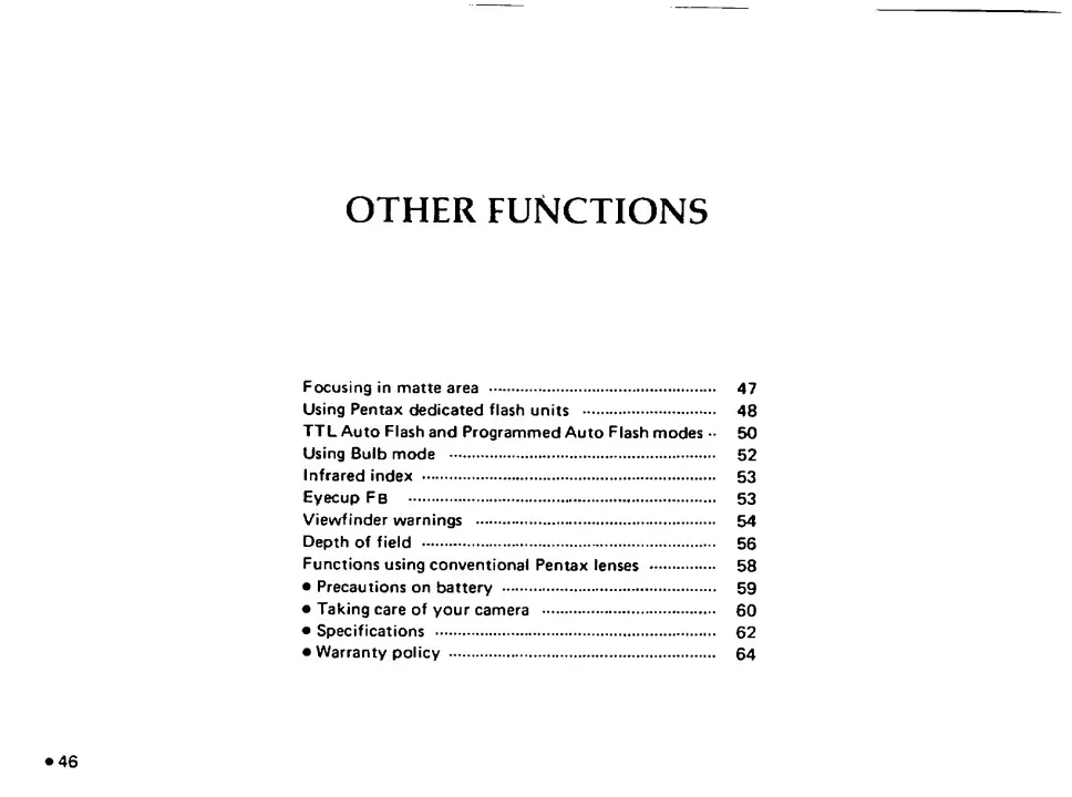 Pentax SF10 - Other Functions