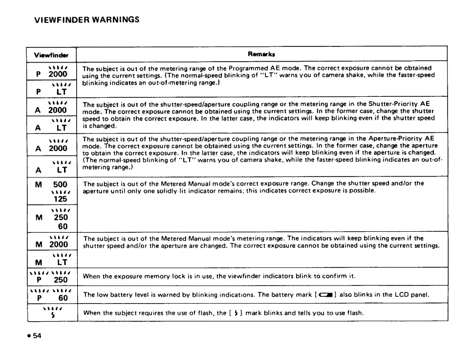 Pentax SF10 - Viewfinder Warnings