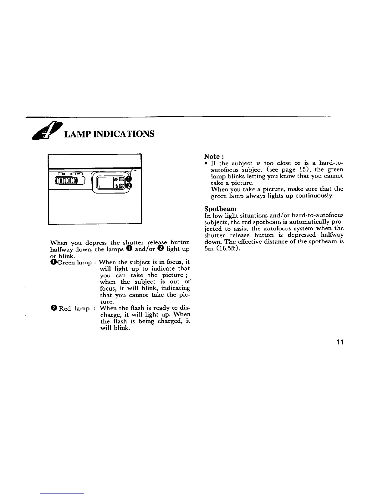 Pentax UC-1 - Lamp Indications; Spotbeam