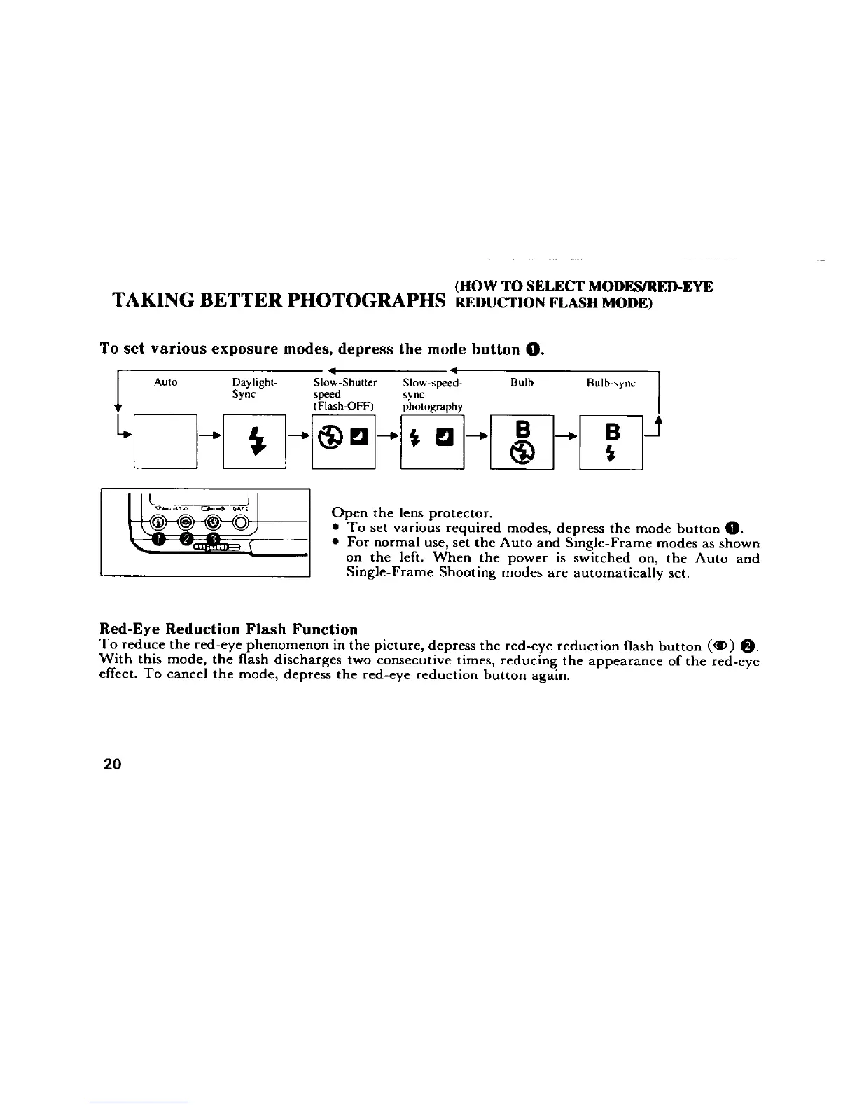 Pentax UC-1 - Taking Better Photographs; Selecting Exposure Modes; Red-Eye Reduction Flash Function