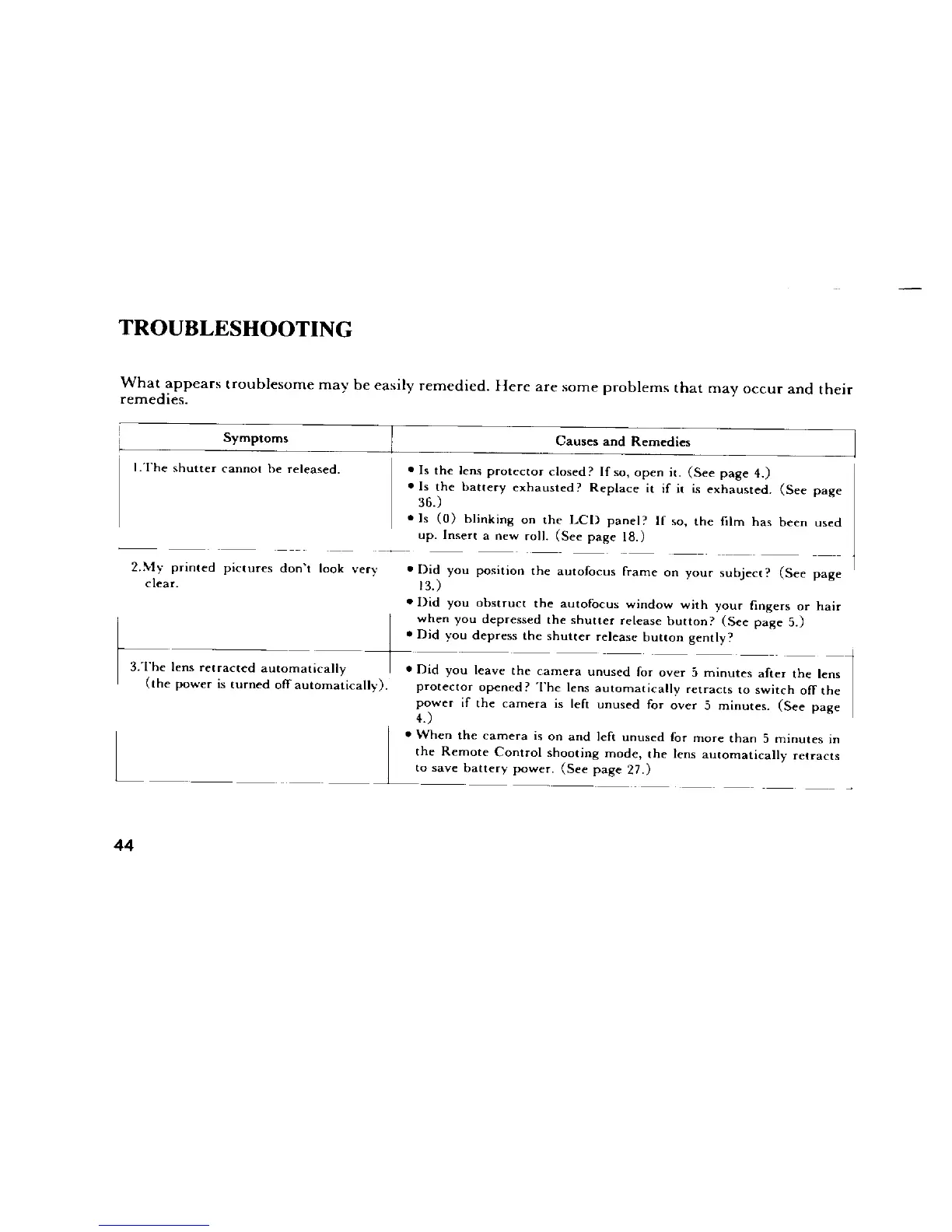 Pentax UC-1 - Troubleshooting
