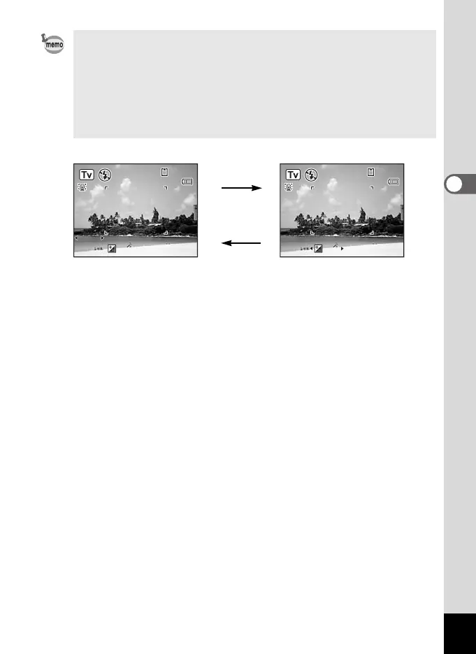 • EV compensation stays displayed when set to a value other than ±0.0,
