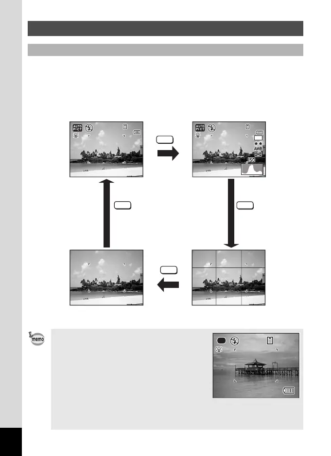 you press the W button: “Normal Display”, “Histogram + Info”,