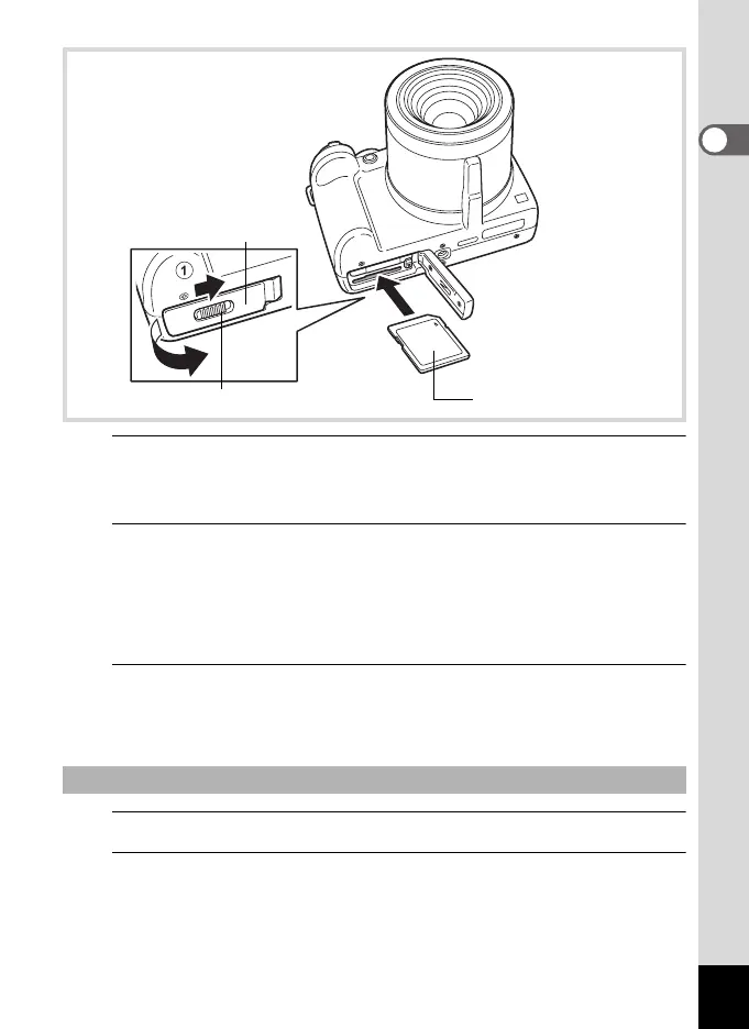Slide the battery/card cover lock lever in the direction of the arrow to