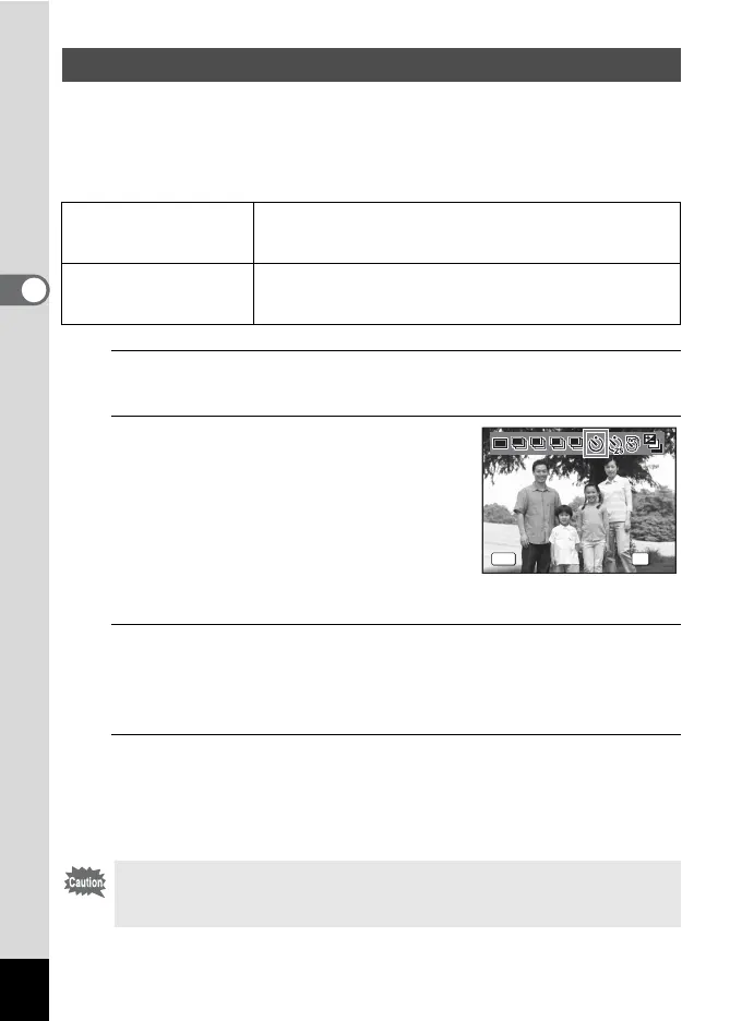 In Self-timer mode, the picture is taken ten seconds or two seconds after