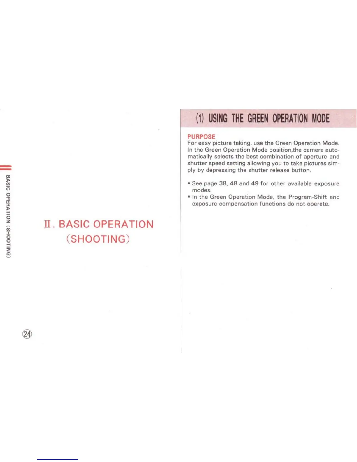 Pentax Z-70 - Basic Operation (Shooting); Using the Green Operation Mode