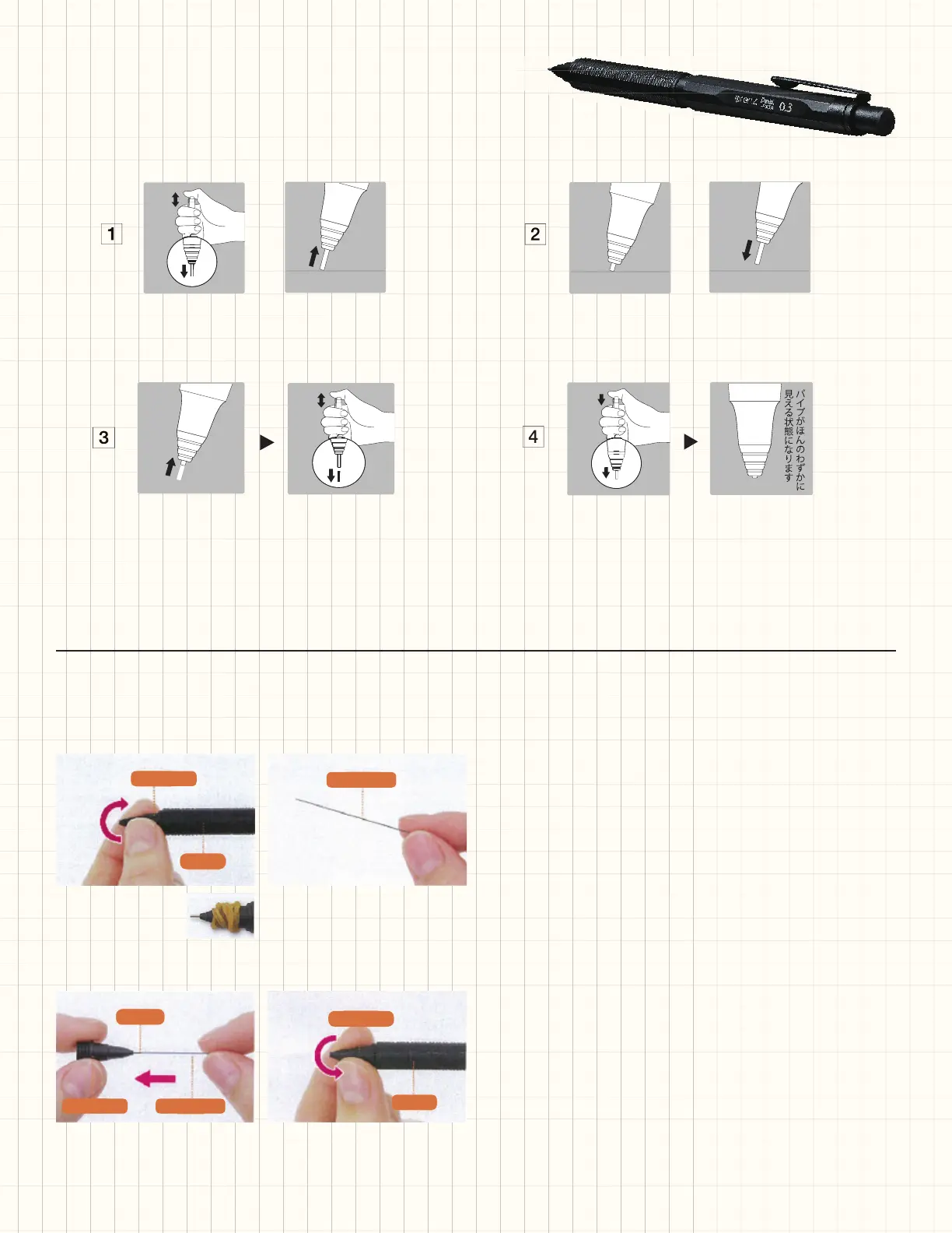 After inserting a new refi ll lead, click and press against a fl at surface