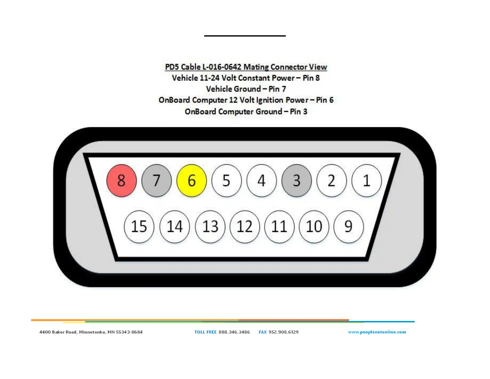 peoplenet PD5 - Cable Pin-Out Information; PD5 Cable Connector View; Vehicle Power and Ground Pins; OnBoard Computer Power and Ground Pins