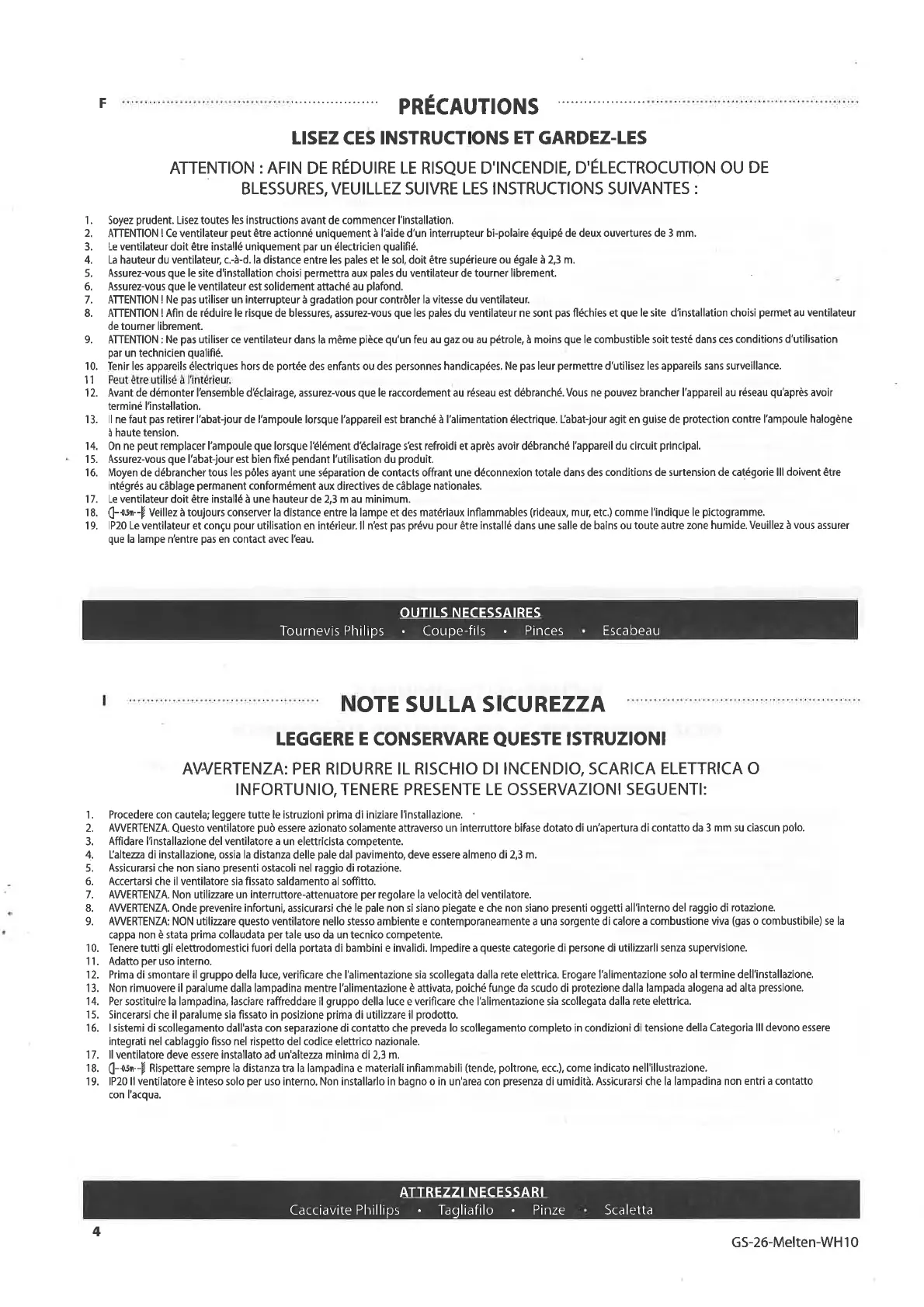 17. ll ventilatore deve essere installato ad un'altezza minima di 2,3 m.