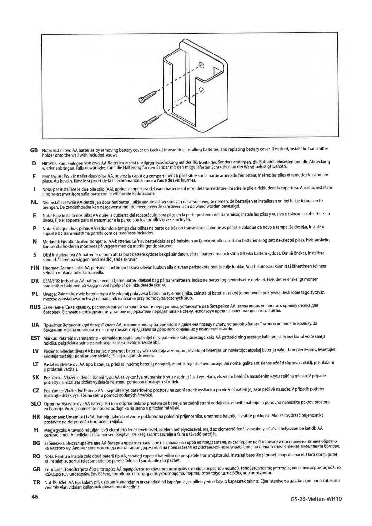 HR Napomena:Umetnite(lx9V)baterüutakodaoworitepoklopacnapolediniprijenosnika,umetnetebateriju,ivrat¡tepoklopac.Akoåelite,dråaðprijenosnika