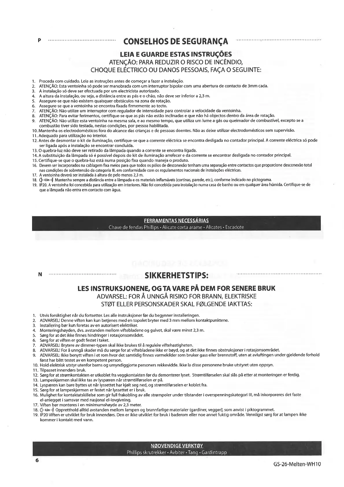 1 9. lP20 Viften er utviklet for bruk innendørs. Den er ikke utviklet for bruk