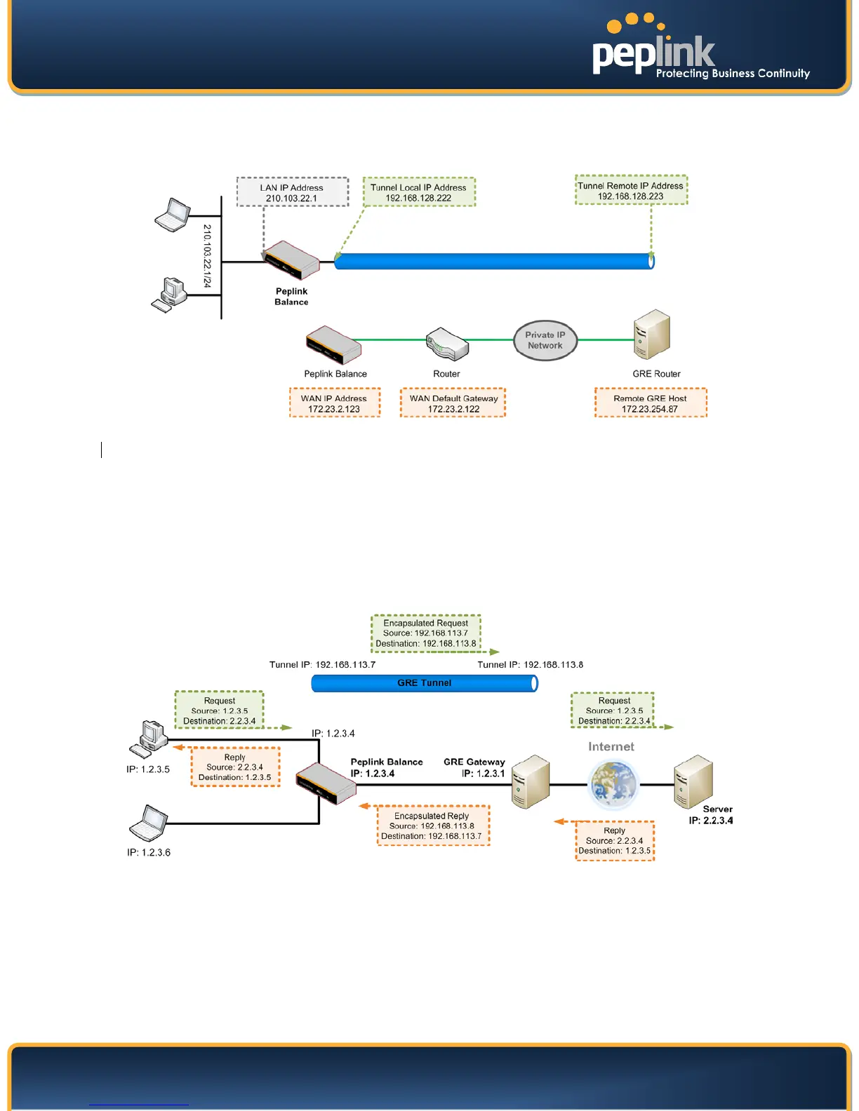 The following figure shows a typical scenario with Peplink Balance under the GRE connection mode and