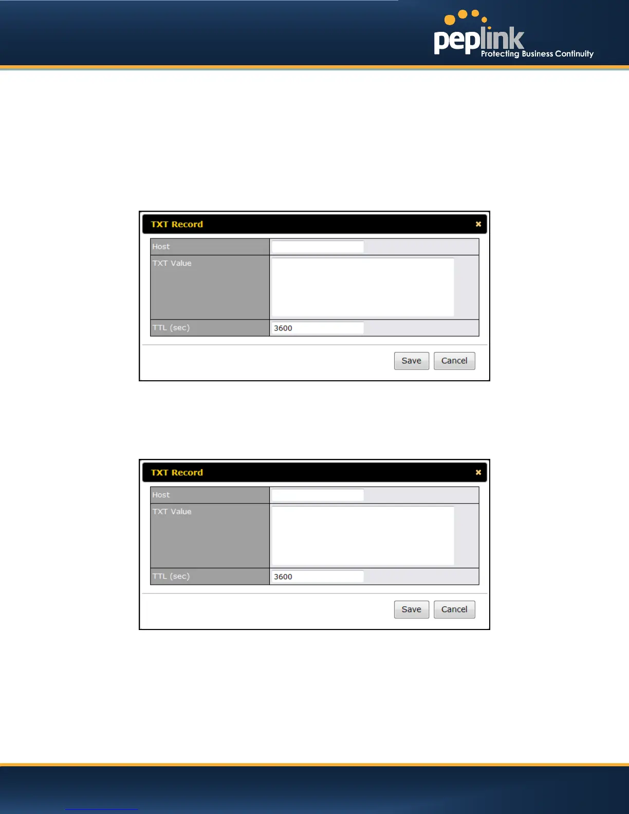 pointing to your DNS server’s (the Peplink Balance) public IP addresses.