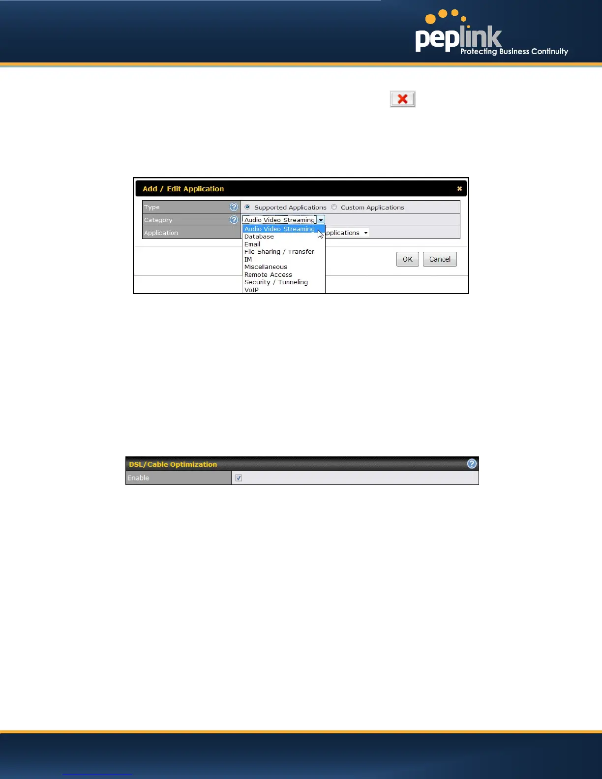 WhenSupported Applications is selected, the Peplink Balance will inspect network traffic and prioritize