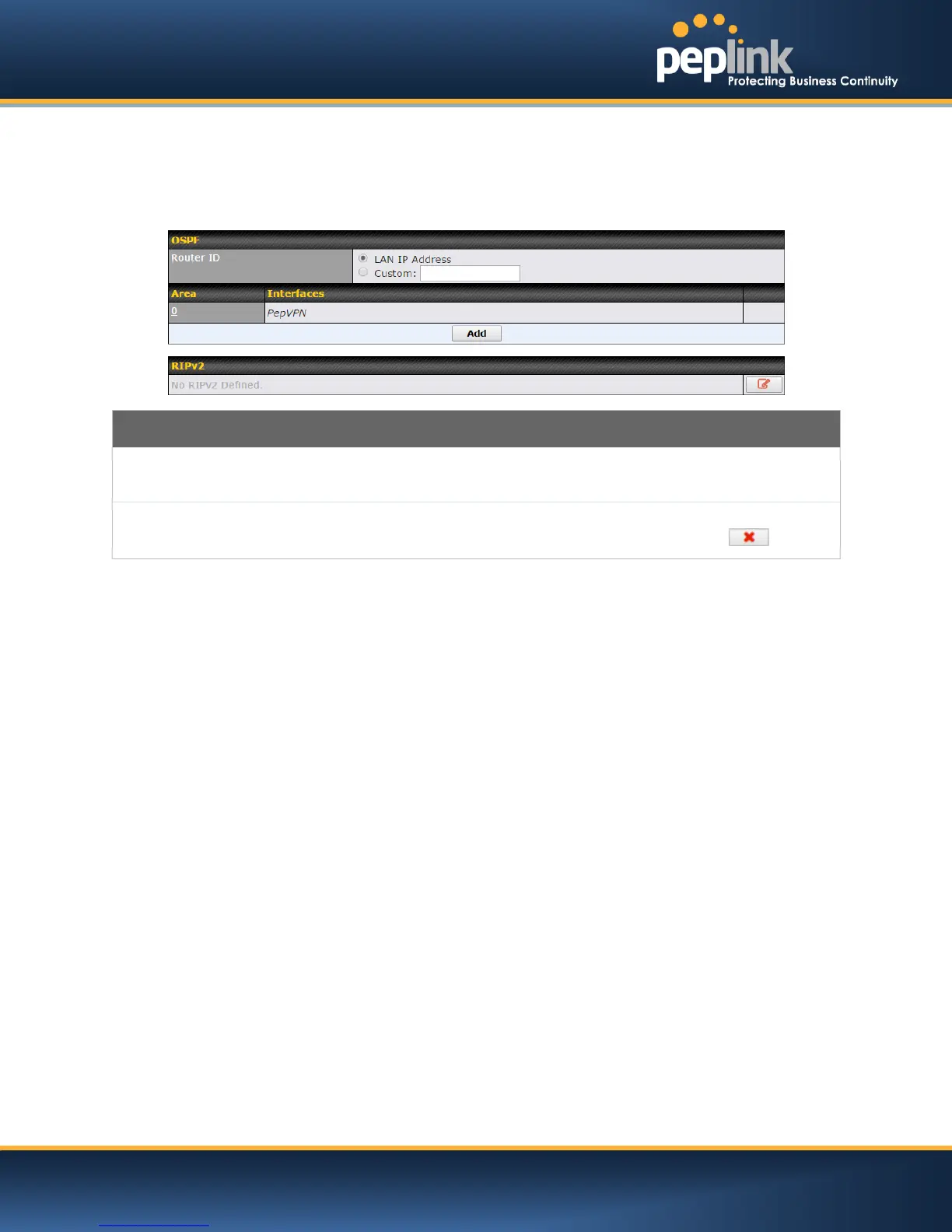 The Peplink Balance supports OSPF and RIPv2 dynamic routing protocols. Click the