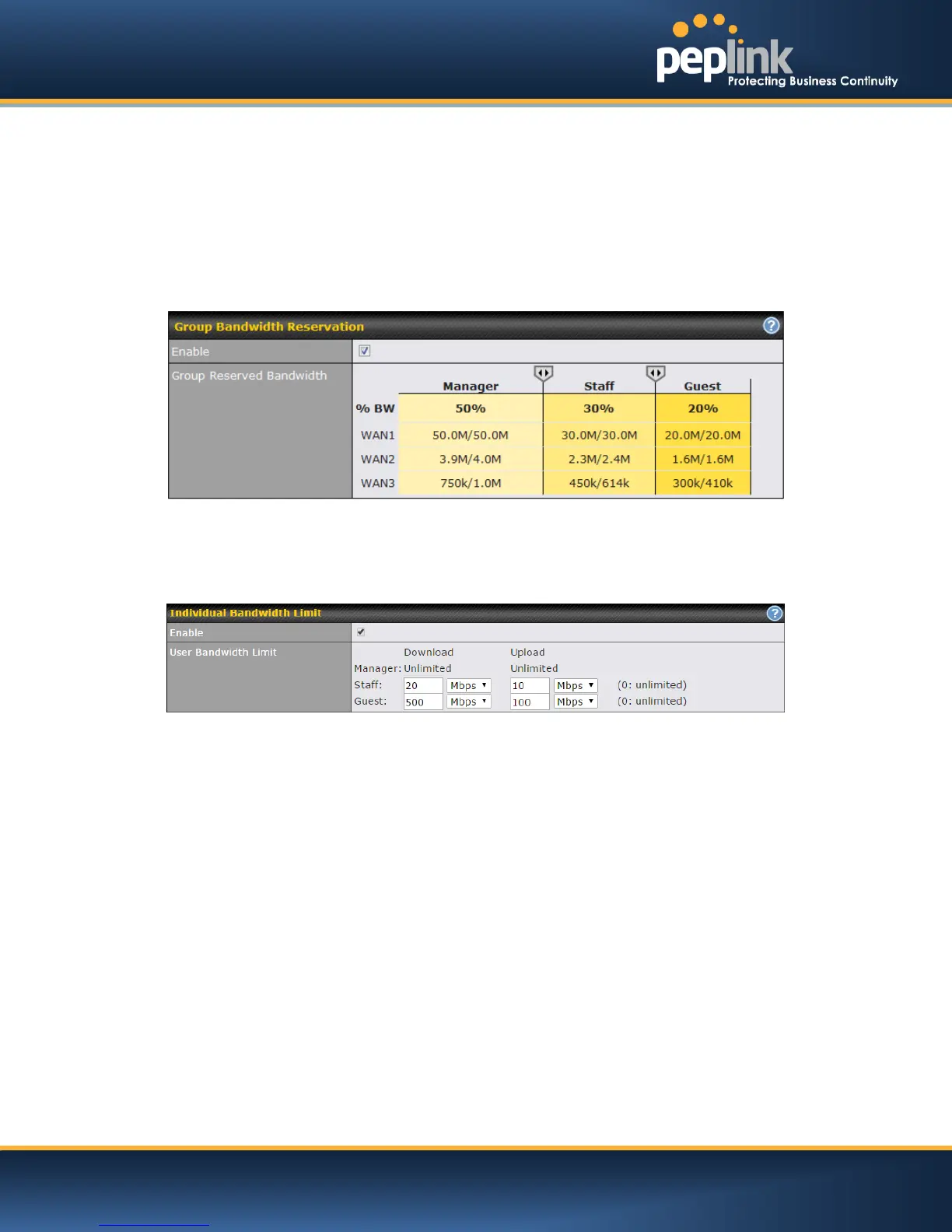 By default, 50% of bandwidth has been reserved for Manager, 30% for Staff, and 20%
