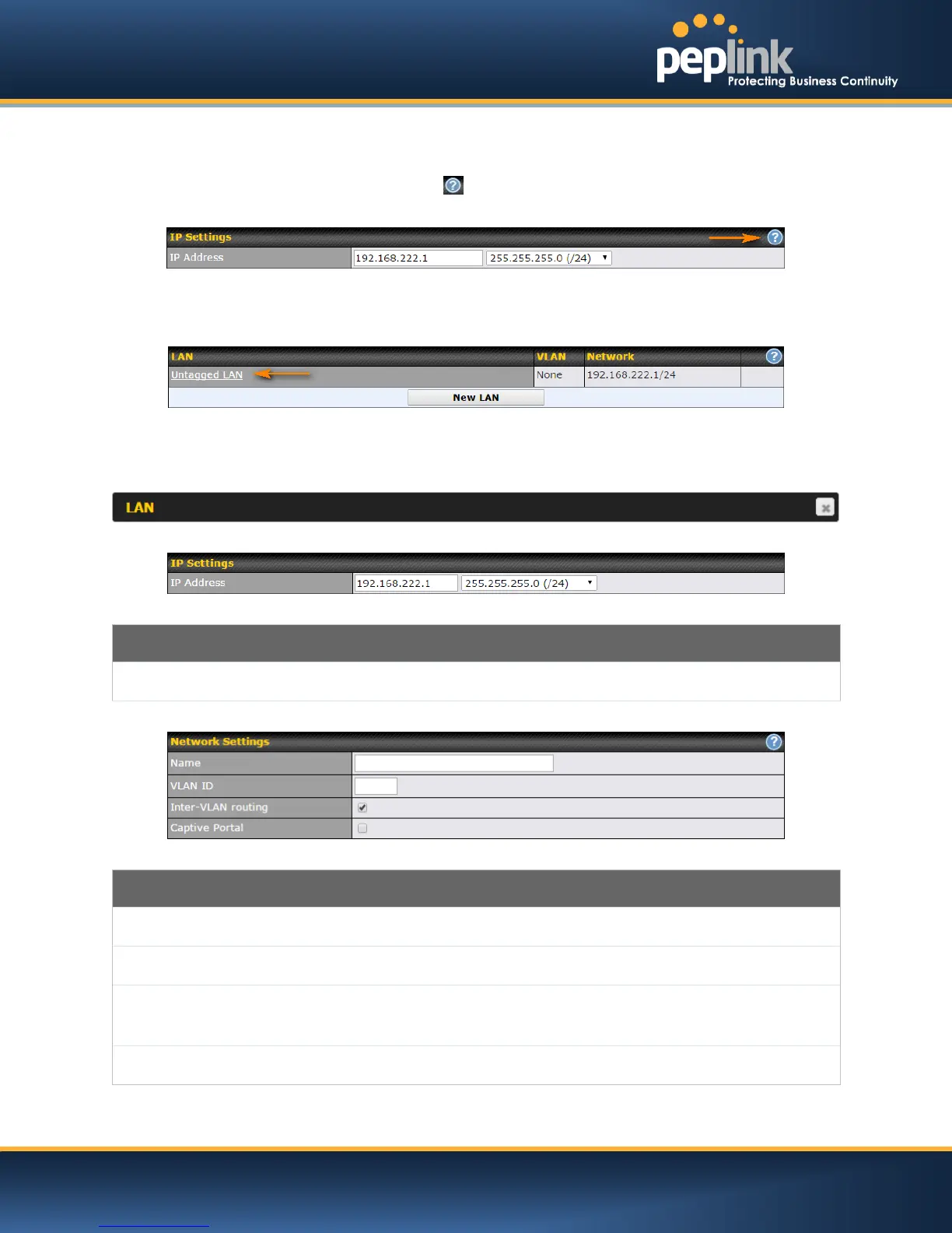 Enter the Peplink Balance’s IP address and subnet mask values to be used on the LAN.